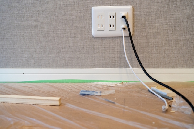 ルーターから二階までのケーブルの通し方を一緒に確認しながら、壁や床に目立たないように配線。
